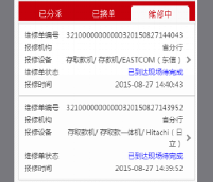 4、我的工单:工行员工、维修管理员、维修工程师